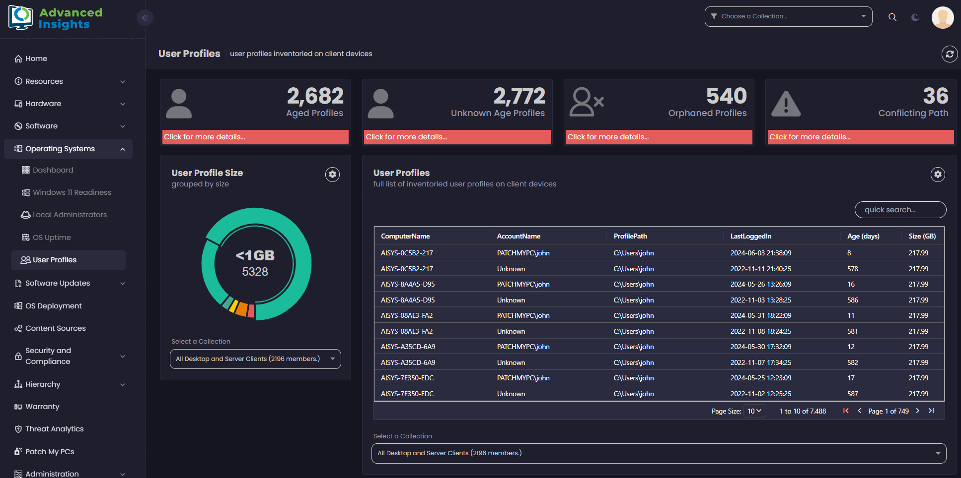 * You can now include a default ConfigMgr collection for any role or user. This setting will auto-populate all dashboards with this collection as a filter where appropriate. A user can still select other collections they have access to view if desired.\