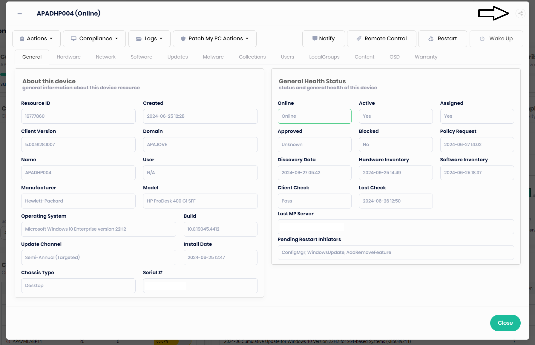 * Storage table empty on device modal due to newer instances of SCCM changing where the data is stored